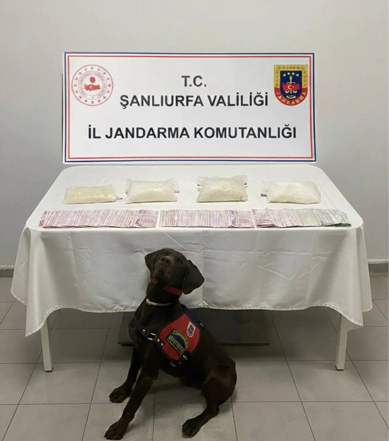 Şanlıurfa İl Jandarma Komutanlığı ekipleri "Narkotik suçlarla mücadele" çalışmalarını sürdürüyor. Bu kapsamda Haliliye ilçesinde uyuşturucu ve uyarıcı madde ticareti yaptığı tespit edilen 3 şahsa yönelik hassas burunlu köpeklerin de katılımı ile operasyon düzenlendi. Operasyonda 4 kilogram uyuşturucu madde, suçtan elde edildiği tespit edilen 64 bin 800 TL nakit ele geçirildi, 3 şüpheli gözaltına alındı.