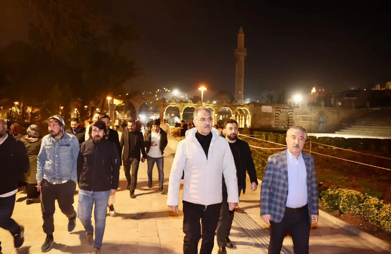 Eyyübiye Belediye Başkanı Mehmet Kuş, Başkan Yardımcısı Necmeddin Sağlam ve yüklenici firma yetkilileriyle birlikte, Halilürrahman Gölü ve Hz. İbrahim Peygamber makamının içerisinde yer aldığı Balıklıgöl Platosu’nda devam eden aydınlatma çalışmalarını inceledi.